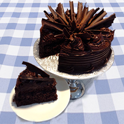 Chocolate sponge cake covered in a rich chocolate icing. Center is filled with rich chocolate icing. |
